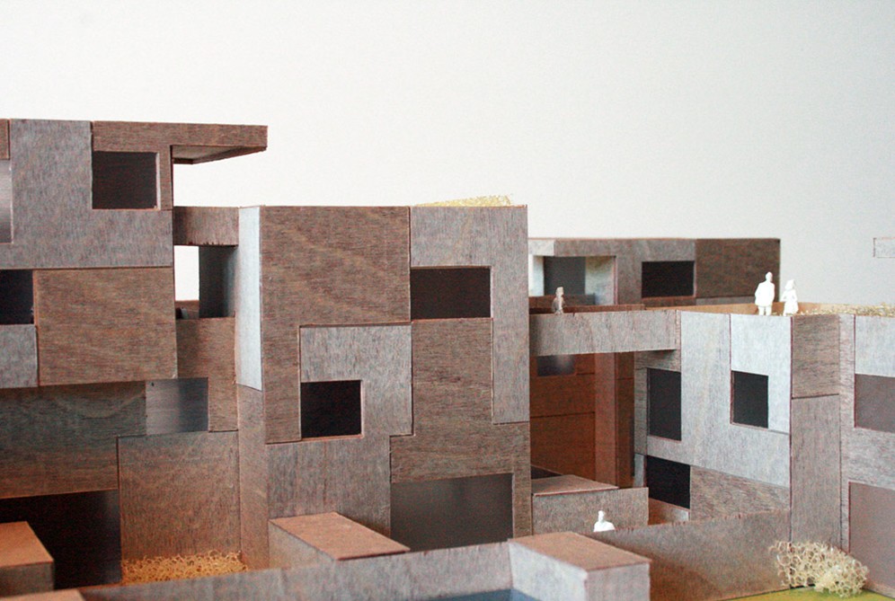 The competition is a proposal for a small scale housing project in the city of Groningen. Each individual dwelling is readable as a separate entity, as well as part of a whole. The structure is simple and rational for optimizing the relationship between value and cost. The project is characterized by creating a hierarchy of outside spaces which is clearly defined public and private areas, utilizing storage shelters and fences, resulting in a rich spatial environment still easy to orientate yourself within. The units have generous private outside living rooms, on the ground for some units, on the roof for some, closely connected to the main inner room with removable folding doors. Each unit creates living qualities with dense solutions, flexible floor plans, parking underneath the buildings and an optimized relationship between inside and outside.