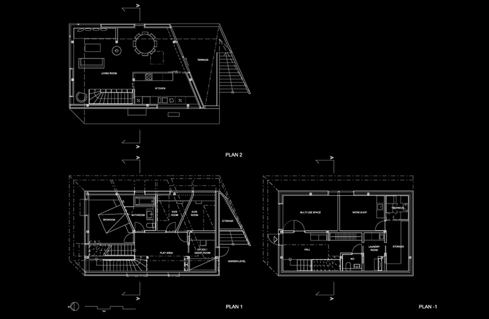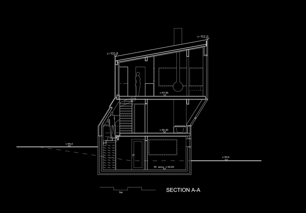 Situated in the residential area of Havstein, this compact single family house is overlooking the fjord and city of Trondheim. The house has a modest and abstract formal character in a neighbourhood with various density and architectural expressions. Regulated minimal distance to adjacent road is maintained by the shifting geometrical shape of the house. The shift also obtains a significant view for a neighbour up the hill. These two obstructions - road and neighbour - gave the house its characteristic form. The vase-like expression of the house has emerged from minimal details, along with an exterior and interior cladding in white fiber cement panels. Ceilings are in birch plywood and the floor is made in epoxy terrazzo cast on site which gives a warm atmosphere to the interior.